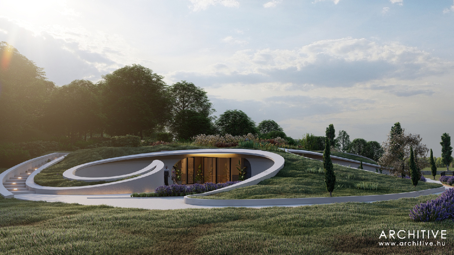 Megrendelő egy parametrikus elemeket tartalmazó földház koncepció tervvel bízott meg, mely szervesen beleilleszkedik a dél-dunántúli régió lankás dombos vidékbe.